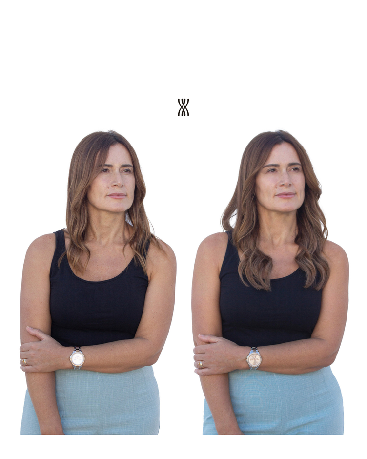 "Eu tive COVID e depois de recuperar, notei um afinamento significativo do cabelo. Este novo método foi uma salvação, sou muito grata. Ele adiciona o volume que eu perdi sem danificar o meu cabelo e mistura-se tão naturalmente."